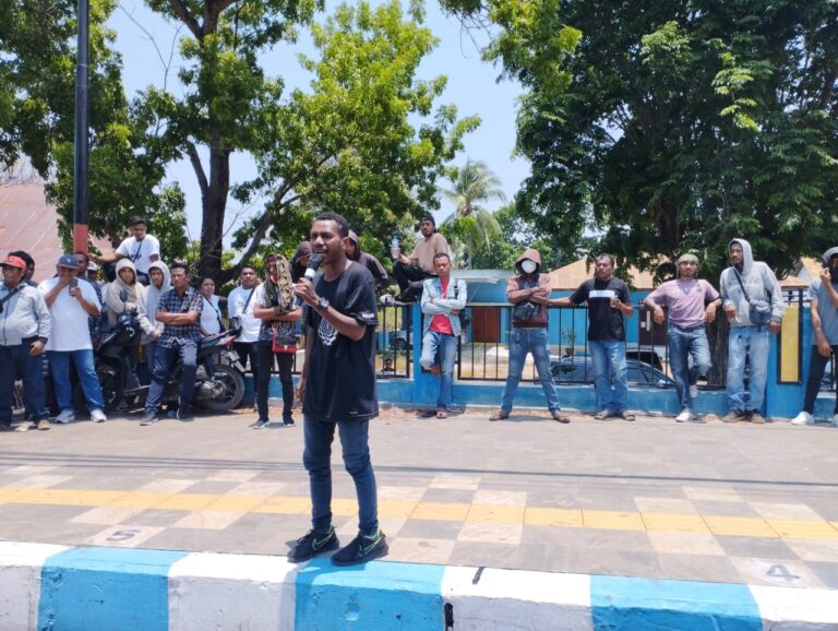 Kupang, Vox NTT- Aksi kelompok massa yang bertajuk peduli manusia dilaksanakan di depan Kantor Pengadilan Negeri (PN) Kupang, Senin (30/10/2023) siang.