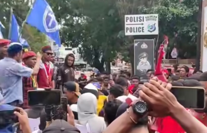 Dalam aksi tersebut, massa melakukan orasi dan membakar ban sebagai bentuk protes. Tak hanya itu, mereka juga sempat mencoba merangsek masuk ke dalam kantor Gubernur NTT dan merusak pintu gerbang masuk.