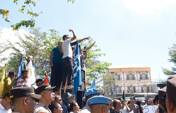 Aksi damai ini mendapat respons langsung dari Wakil Gubernur NTT, Johanis Asadoma, yang menemui massa aksi di halaman Gedung Sasando.
