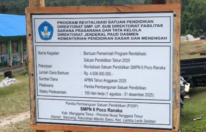 Untuk SMPN 6 Poco Ranaka sendiri, progres pembangunan saat ini masih berada pada angka 13 persen, berdasarkan hasil pemeriksaan tim fasilitator pada 19 Agustus 2025 lalu.