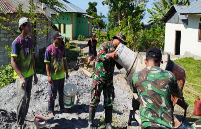 Terpantau, antusiasme masyarakat sangat tinggi. Mereka merasa sangat terbantu dengan kehadiran Babinsa yang secara langsung terlibat menyokong pekerjaan.