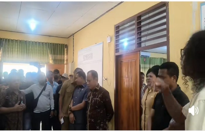 Ketua DPRD Nagekeo dari PKB, Shafar, saat dibentak-bentak oleh orang tak dikenal berambut gondrong pada Senin, 6 Oktober 2025 di depan ruang sidang paripurna DRPD Nagekeo (Foto: Tangkapan layar video)