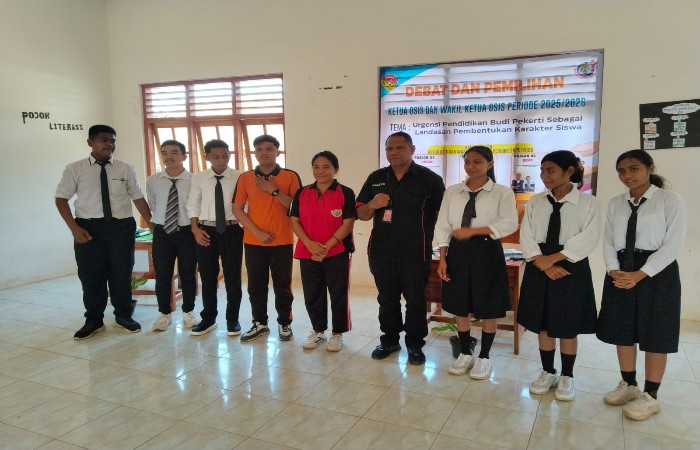 Tambolaka, VoxNTT.com – SMA Katolik St. Josef Freinademetz (SMAFREND) Tambolaka, Sumba Barat Daya, menggelar debat terbuka calon ketua dan wakil ketua OSIS periode 2025/2026 di ruang kelas XA pada Jumat, 10 Oktober 2025. Kegiatan ini mengusung tema “Urgensitas Pendidikan Budi Pekerti Sebagai Landasan Pembentukan Karakter Siswa.”