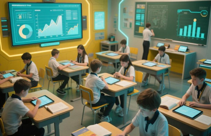 Sebuah artikel oleh BenQ menggambarkan bahwa kelas pintar (“smart classroom”) menggunakan papan tulis interaktif sebagai tulang punggung, memungkinkan guru dan siswa berinteraksi, berbagi layar, membuat anotasi langsung pada konten, dan memperkuat literasi digital.