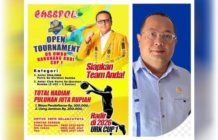 Waingapu, VoxNTT.com – Turnamen bola voli putra Dr. Umbu Rudi Kabunang (URK) Cup I dijadwalkan digelar pada awal Maret 2026 di Waingapu, Kabupaten Sumba Timur.