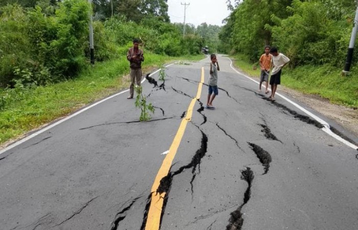 Selama ini, kata Fendy, badan jalan tersebut memang sudah perlahan retak dan kini terlihat semakin parah.