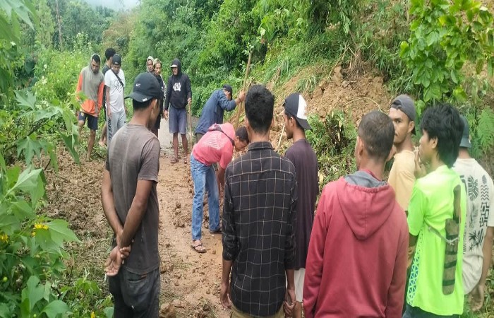 Kepala Desa Bangka Kuleng, Marsel Mohon, mengatakan longsor itu terjadi pada Selasa malam dan mengakibatkan badan jalan tertutup total.
